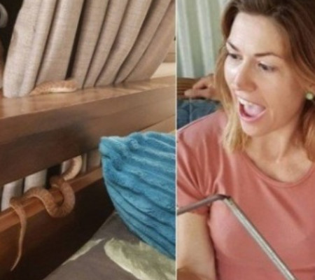 Ao levar a mão à testa, Emily tocou em algo frio. Não demorou a perceber que se tratava de uma cobra. O marido, Jason, de 49 anos, inicialmente não acreditou na esposa. Mas, ao acender a luz, ele viu a cobra, de 60 centímetros.