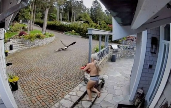 Agindo rapidamente por impulso, uma canadense de 31 anos conseguiu resgatar seu ganso de estimação no momento em que ele era atacado por uma águia, em Vancouver. Cait Oakley abriu a porta dos fundos de sua casa e partiu para cima da ave, mesmo com seu bebê no colo. A mulher estava amamentando a criança recém-nascida.