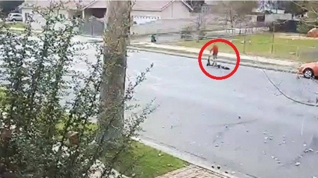 A mulher só parou ao ser confrontada por ciclistas que passavam pela rua em Bakersfield (Califórnia, EUA).