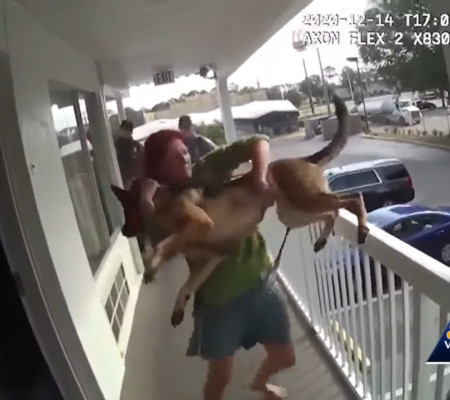 Mas, de repente, a hóspede ficou mais agressiva, pegou o cão e o jogou, segundo o que foi registrado por filmagem da câmera de um dos policiais envolvidos no incidente. Logo depois, Allison foi jogada ao chão e algemada.