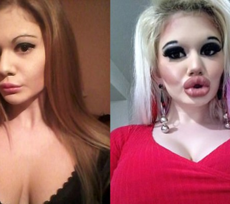 Andrea Emilova Ivanova, de 22 anos, mora na Bulgária, mas ficou conhecida no mundo todo por causa de sua aparência. Isso porque ela já realizou o procedimento para preencher os lábios 15 vezes e quer realizar o sonho de ter "os maiores lábios do mundo". As informações são do IG.