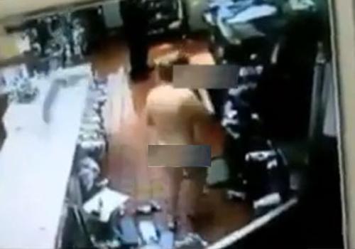 Funcionários do local forneceram o vídeo, que foi divulgado na internet e se tornou viral. Inicialmente a mulher bate com a cabeça no balcão, e depois o atravessa para o outro lado.