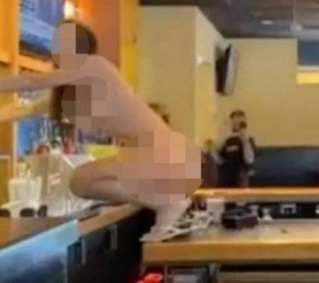 Um vídeo registrando o incidente mostra Tina, ainda nua, deitada de bruços enquanto o chão do restaurante está coberto de cacos de vidro e garrafas quebradas. A americana foi levada a um hospital, e um relatório da polícia revelou que ela não tinha consumido drogas. A mulher também não tem histórico de problemas mentais.