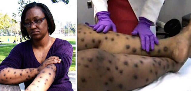 Uma mulher chamada Calvina, sentiu um ardor estranho no corpo e após pouco tempo, manchas pretas começaram a aparecer na pele da mulher.