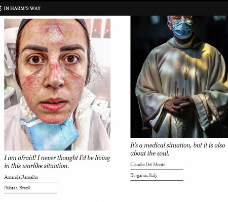 Todas as segundas-feiras, o NTY publica a série In Harm's Way, onde traz fotos e depoimentos de técnicos, enfermeiros, médicos e prossionais que atuam no combate ao novo coronavírus.