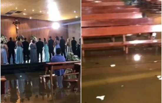 Dois noivos se casaram em uma igreja alagada na última quinta-feira (23) em Montes Claros (MG). Imagens compartilhadas nas redes sociais mostram os convidados na água e a noiva sendo carregada para entrar no local.