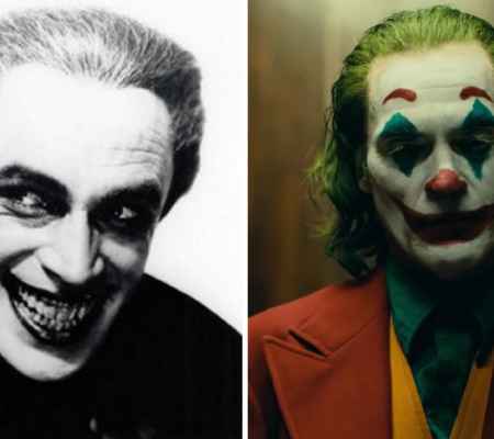 Há muitas características semelhantes entre o visual do personagem de Veidt no filme O Homem Que Ri e Coringa: o sorriso gigantesco, os dentes que ocupam a boca inteira, o cabelo jogada para trás, além das roupas. A própria ambientação de Homem Que Ri também pode ser relacionada com o vilão, cujas histórias são sombrias e mostram um personagem perturbado. O filme solo do vilão vai apresentar justamente uma versão realista do antagonista, da transformação psicológica dele para uma ameaça a todos.