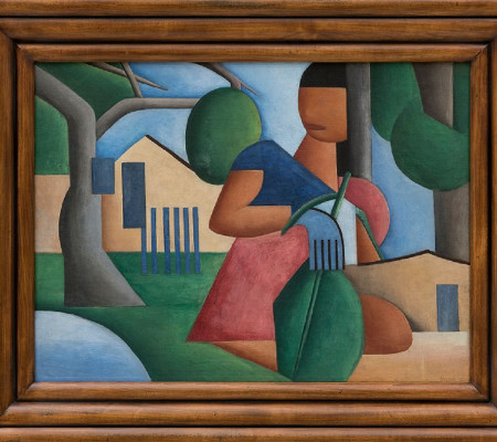 Em 1923, em carta enviada à família, a paulista Tarsila do Amaral (1886-1973) dizia: “Quero, na arte, ser a caipirinha de São Bernardo, brincando com bonecas de mato, como no último quadro que estou pintando”. A artista se referia à fazenda onde cresceu e à pintura A caipirinha (óleo sobre tela, 60 cm x 81 cm), produzida naquele ano, um após a Semana de Arte Moderna, e que agora vai a leilão por conta de uma penhora judicial. Com lance mínimo de 47 milhões de reais, recorde para um(a) artista brasileiro(a), a obra estará disponível para arremate em 17 de dezembro, em evento realizado pela Bolsa de Arte. A partir do dia 8, terça-feira, A caipirinha estará disponível para a visitação pública.