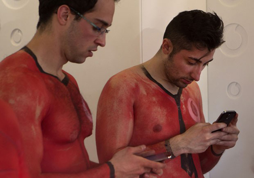 Uma operação de telefonia promoveu uma promoção curiosa na última quinta-feira (13) em Madri, na Espanha, e ofereceu 50 celulares gratuitos para as primeiras 50 pessoas que entraram em suas lojas seminus e com pintura corporal.