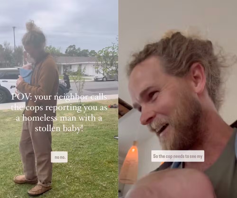 Quem diria que um simples passeio pela vizinhança acabaria em confusão em Huntington Beach, na Califórnia (EUA). O artista e pintor Chapman Hamborg foi dar uma voltinha com a filha recém-nascida quando foi abordado por um grupo de policiais. Ele contou: "Alguém ligou para a polícia achando que eu era uma pessoa em situação de rua caminhando com um bebê. Agora os policiais pediram para ver meu documento".