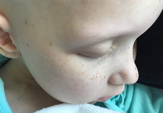 Hayley Brown, uma jovem australiana de apenas 7 anos, perdeu praticamente todos os pelos do corpo durante um tratamento contra o câncer. E o último fio dos seus cílios a cair foi registrado e compartilhado por seu pai, Andrew Brown, causando comoção geral na internet.