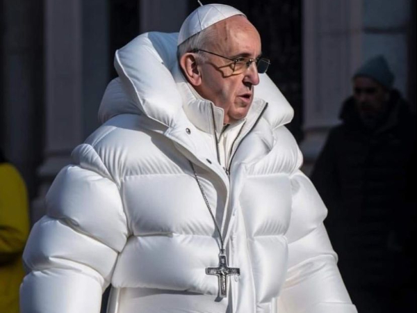 Neste sábado (25), a imagem do Papa Francisco vestindo um casaco branco, de características completamente distintas das tradicionais vestimentas adotadas pelo pontífice, e caminhando por uma rua, viralizou. Mas, ela não é verídica. O traje supostamente usado pelo Papa Francisco é fruto de uma montagem feita por inteligência artificial.
