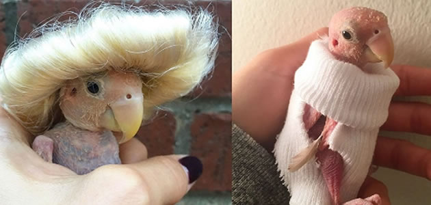 Passarinho sem penas ganha roupas sob medida | Foto: Reprodução
