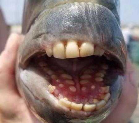 Um raro peixe com dentes semelhantes aos humanos foi pescado nos Estados Unidos. Uma foto compartilhada no Facebook esta semana mostra o peixe de aparência no minímo interessante.