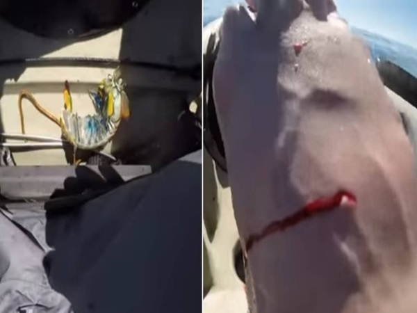 Filmando a pescaria, o YouTuber Markus capturou o momento em que a criatura o atacou e as consequências do dano que conseguiu causar.