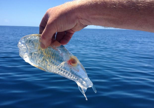Stewart Frases pescava com os filhos Conaugh e Finn quando viu o ?camarão? translúcido flutuando próximo à superfície. ?A curiosidade falou mais alto sobre mim e resolvi dar uma olhada?, contou.