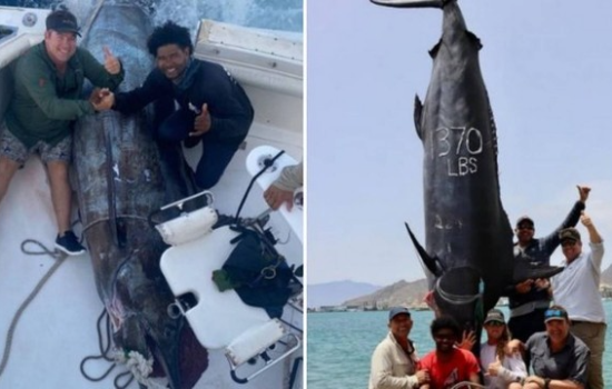 Um grupo de pescadores sul-africanos fisgou um marlim-azul de incríveis 3,7 metros de comprimento e pesando 621 quilos.