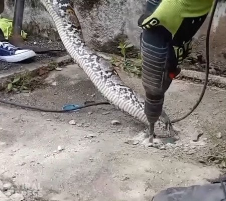 O segurança decidiu chamar uma equipe de resgate após uma tentativa sem sucesso de retirar o animal do lugar desconfortável. Com um martelo para quebrar o concreto, a píton finalmente foi solta. "Eu sei que cobras são perigosas, mas eu senti pena dela. A cobra precisava da ajuda de humanos", comentou o segurança.