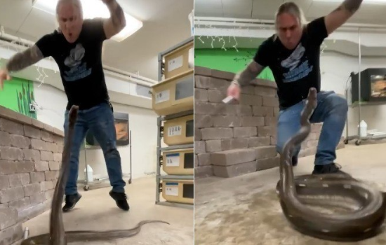 Uma píton por pouco não atingiu as partes íntimas do influenciador e entusiasta de animais exóticos Brian Barczyk. Apesar do susto, ele fez questão de compartilhar o momento delicado no perfil que mantém no Instagram.