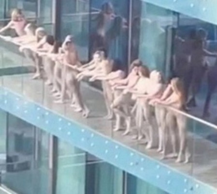 Mulheres completamente nuas em varanda de prédido em Dubai. | Foto: Reprodução