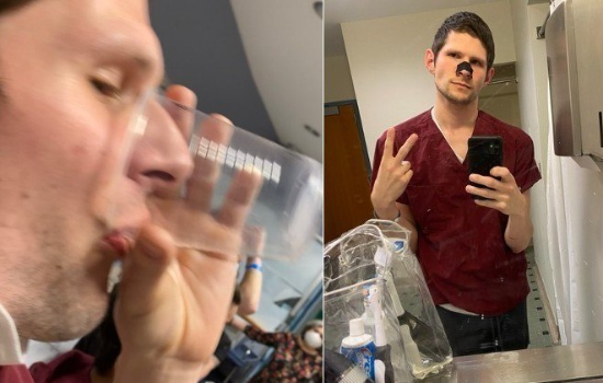 O rapaz ficou de quarentena em um hospital, onde no terceiro dia, despertou com "algo engraçado" na barriga. Não só engraçado, mas também urgente, já que o fez correr para o banheiro.