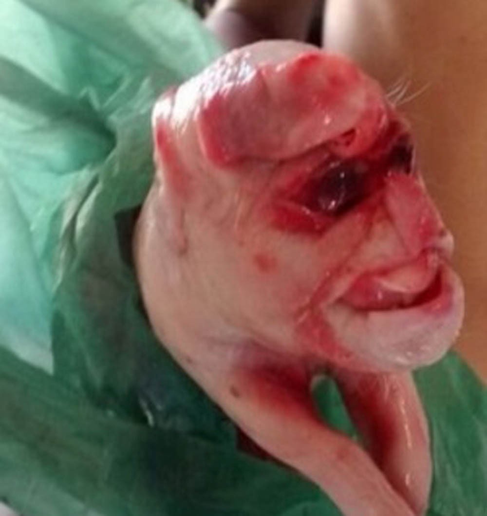 Um porco nasceu sem focinho, por isso parecia ter um ‘rosto’. O animal é da cidade de Pontal do Peba, no sul de Alagoas. A fêmea deu dez filhotes e este foi o único que nasceu com a deformidade.