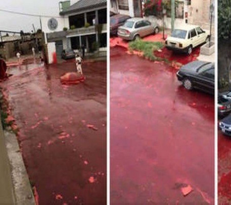 Um problema com um tanque de matadouro despejou cerca de 500 mil litros de sangue em duas ruas de Morón (Grande Buenos Aires, Argentina). Moradores relataram ter ouvido um estrondo no matadouro da Ganadería San Roque por volta das 15h de segunda-feira (9/3), antes de as ruas das cercanias começarem a ser atingidas pelo sangue estocado, contou o Canal 12. As informações são do Extra.