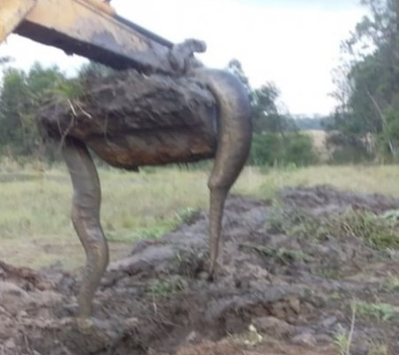 Segundo ele, a retroescavadeira foi abrir uma valeta atrás do açude, momento em que viram a enorme cobra. O produtor não informou o que aconteceu com a Sucuri.