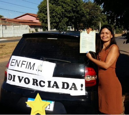Ao 37 anos, a professora Daiana Francisca de Almeida Santos viralizou nas redes sociais ao exibir no carro a faixa “Enfim divorciada”. Foi uma forma de comemorar a separação do ex-marido, em Luziânia, no Entorno do Distrito Federal.  A certidão saiu sete anos após sair de casa.