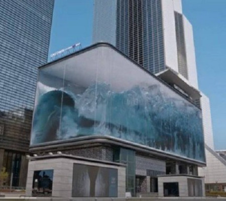 Se, na quarentena, as pessoas não podem ir à praia, o mar vem até elas. Esta é a ideia de um projeto no moderno e sofisticado bairro de Gagnam (aquele da famosa música chiclete), em Seul (Coreia do Sul). Um painel coberto de telões de LED forma em 3D o movimento de uma onda. Uma onda generosa, digna de filme-catástrofe. A simulação de 1 minuto de duração, exibida a cada hora, é tão realista que prega um susto nos mais desavisados que passam pelo local. Informações do Extra.