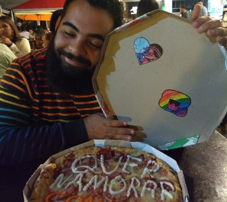 Com o dia dos namorados se aproximando, na próxima quarta-feira (12), um pedido romântico feito por um estudante, no Distrito Federal, viralizou nas redes sociais. Rony Lins Tolentino, de 28 anos, usou uma mensagem escrita em uma pizza para pedir "um ficante" em namoro.