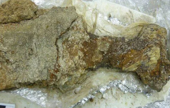 Porém, o que mais chamou a atenção dos especialistas foi uma espada que estava em más condições de preservação e indicava ter sido fundida com sua bainha ao longo do tempo, gerando uma camada superficial que impossibilitava a observação de detalhes.