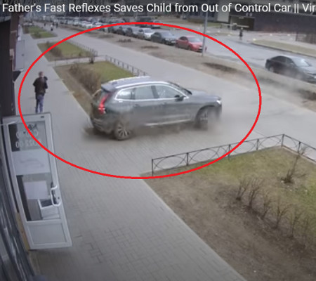 Imagens de uma câmera de segurança registrou na quinta-feira (14/4) o reflexo rápido de um pai ao salvar o seu filho de ser atropelado por um carro em São Petersbusgo, na Rússia.