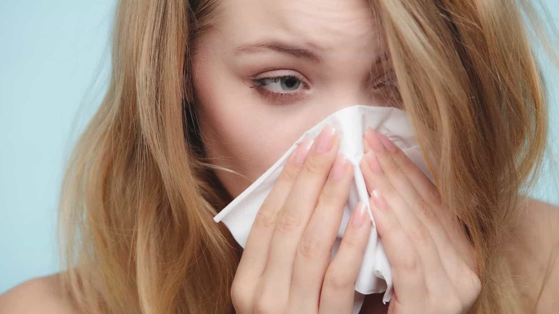 Um dos sintomas da rinite alérgica é coriza em excesso, o que demanda grandes quantidades de lenços.