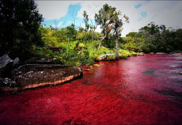Escondido nos confins da Serra da Macarena, na Colômbia, está o rio Caño Cristales. Sua água é como a de qualquer outro rio até que o mês de junho chega e o rio passa por uma transformação, ganhando cores vibrantes, como vermelho, verde, azul, amarelo e preto.