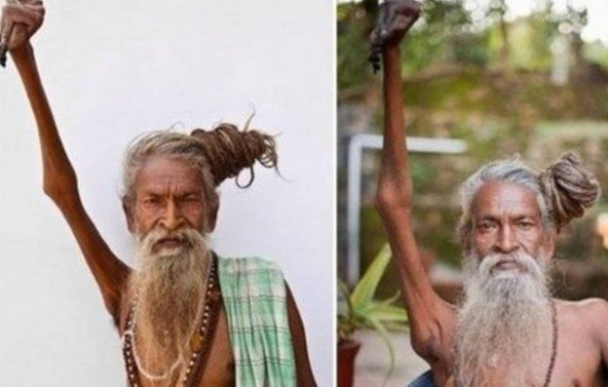 Quem já ficou com um braço levantado por certo tempo sabe a dificuldade que é. Porém para o sadhu, o ato acompanha incrível naturalidade.