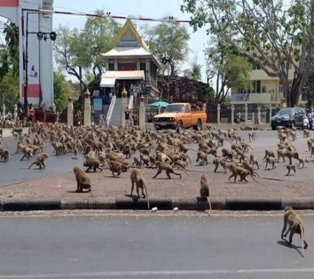 Bandos de macacos famintos estão sendo vistos vagando por ruas de Lopubri (Tailândia) após os costumeiros turistas desaparecerem da região por causa do temor do coronavírus. Sem os visitantes, as centenas de animais perderam a principal fonte de alimentação. As informações são do Extra.
