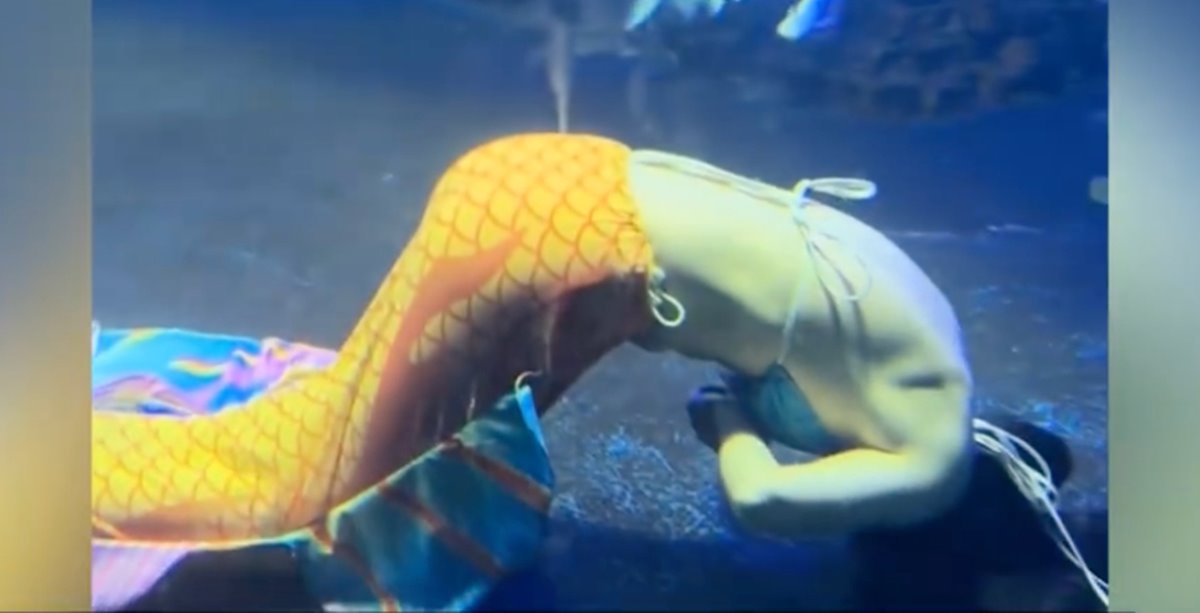 Uma artista que se apresentava como "sereia" em um parque aquático em Taiyuan, no norte da China, desmaiou durante uma performance subaquática na sexta-feira (25). Imagens do público mostraram a artista se contorcendo na água, o que foi inicialmente confundido com parte do show.