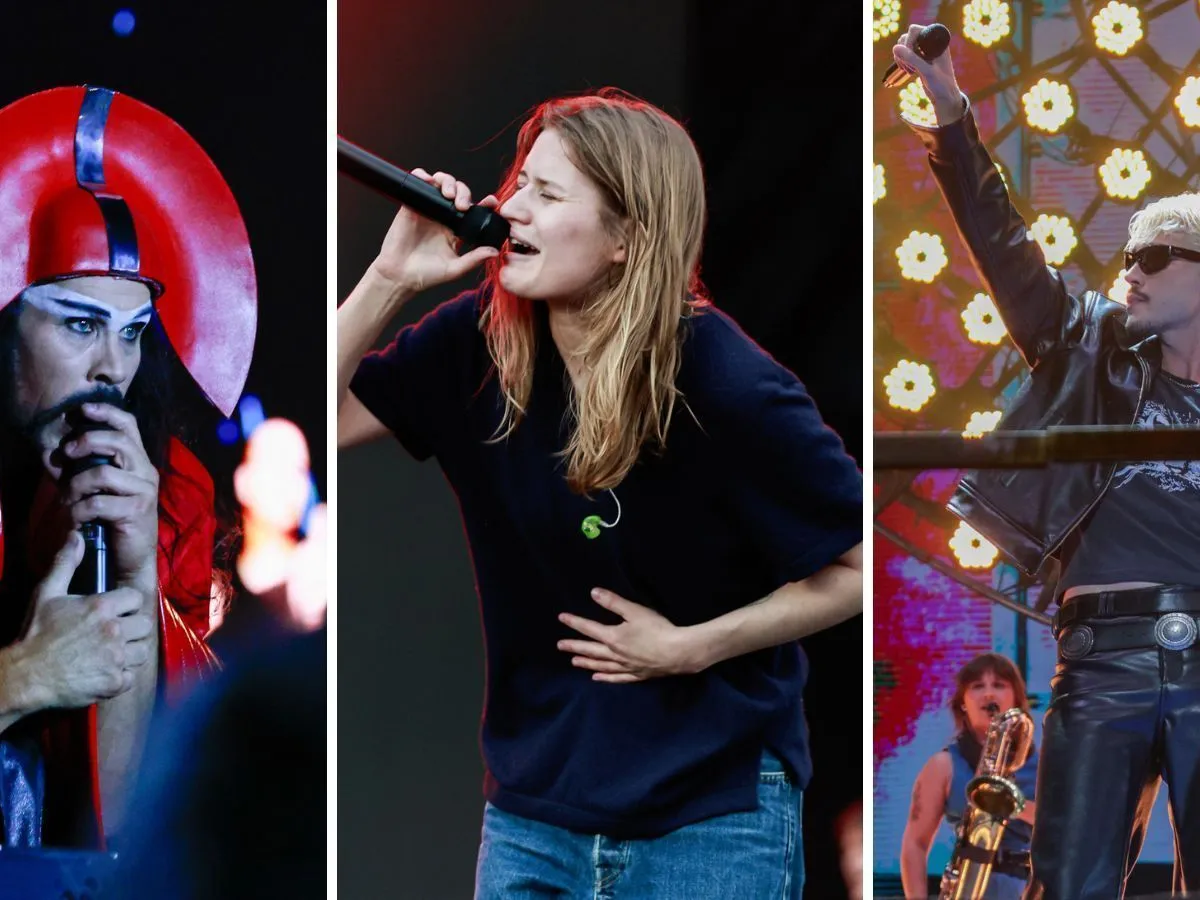Mas a chuva, porém, não intimidou o público do evento, que continuou dançando e curtindo o espaço do festival, com capas de chuva que serviram como o look da vez! Depois que o tempo melhorou, as apresentações se reiniciaram e um arco-íris surgiu no céu durante o show da banda irlandesa Inhaler.