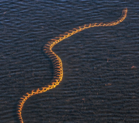 Uma sucuri de aproximadamente 2,5m foi flagrada tomando sol dentro de em um lago de um hotel localizado no Pantanal de Mato Grosso do Sul. O responsável pelo flagrante, Victor Ramalho, contou que o animal estava tranquilo e não se importou com a presença de pessoas que estavam em uma passarela que aproveitaram para registrar o momento.