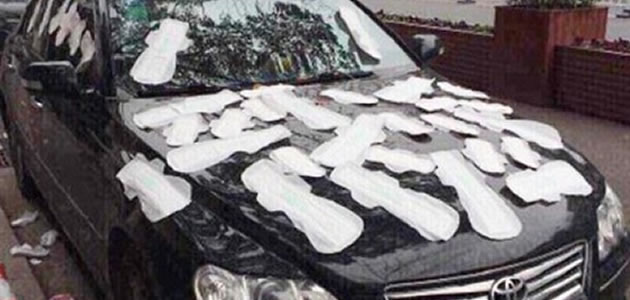 A chinesa foi até a loja mais próxima e comprou uma caixa de absorventes. Li Tan então saiu da loja e foi direto até o carro alugado do namorado e começou a cobri-lo com os absorventes higiênicos. Uma vingança muito criativa para o supostamente infiel namorado.