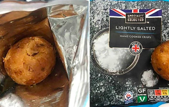Uma moradora de Huddersfield, West Yorkshire, na Inglaterra, ficou surpresa ao abrir uma embalagem de batatas fritas. Diferente do formato chips que geralmente são encontrados, Leah se deparou com uma única batata no pacote.