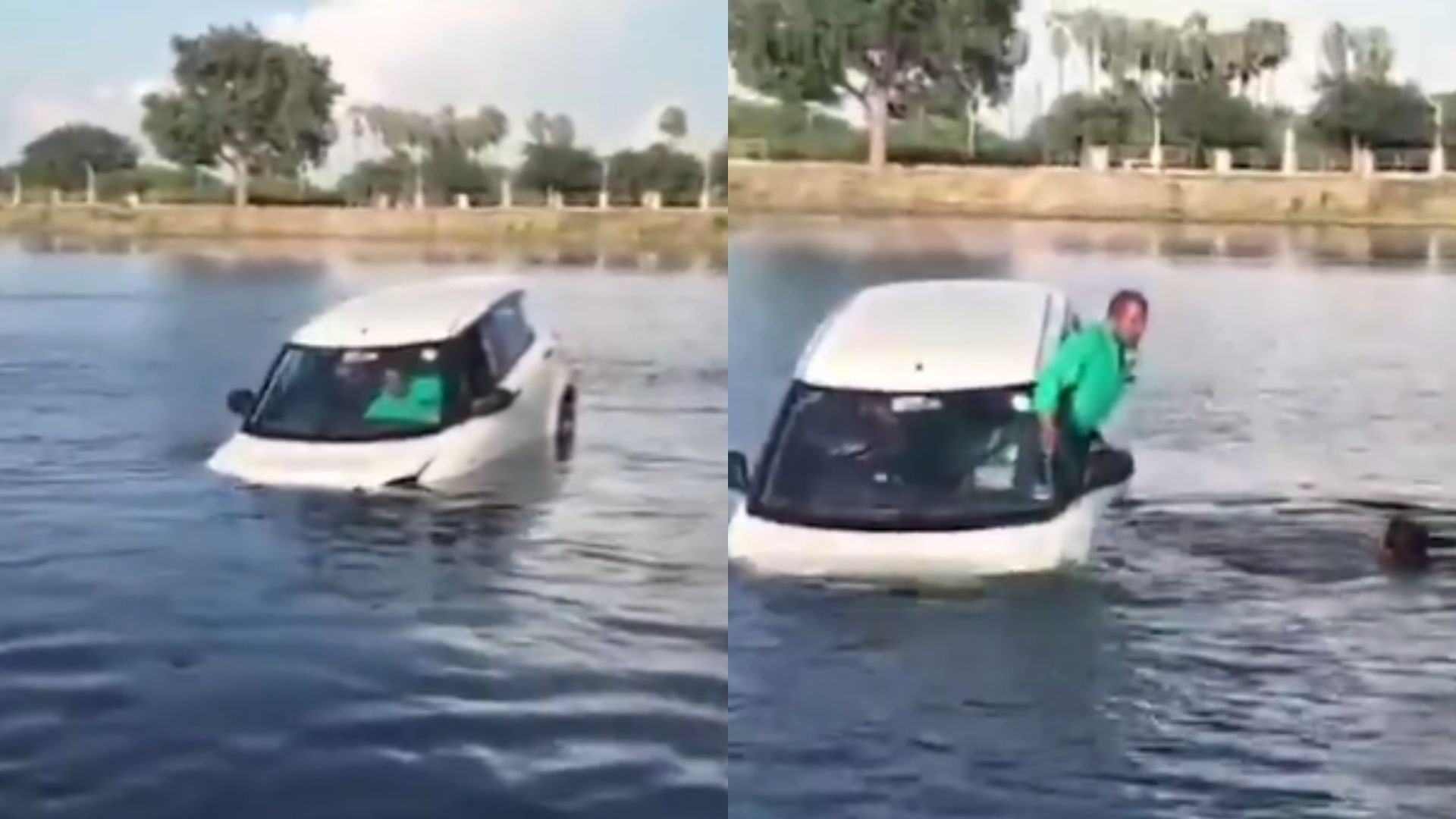 Felizmente, tanto o aluno quanto o instrutor conseguiram sair ilesos. Em um vídeo, que circula nas redes sociais, é possível ver o veículo parado no meio do lago e ambos tentando achar uma forma de sair. Um homem mergulha para socorrê-los e neste momento eles conseguem sair do carro por uma janela.