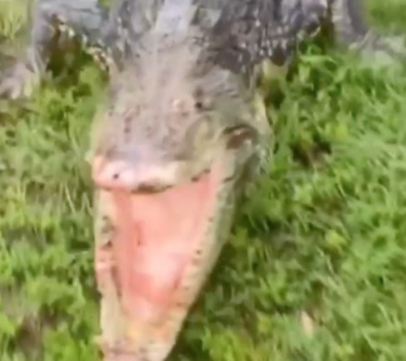 Na gravação, o homem aparece com um grande pedaço de carne e tenta alimentar o animal. Porém, mesmo tendo experiência e jogando o alimento de longe, o crocodilo acaba avançando na direção de Wright, que logo se afasta.