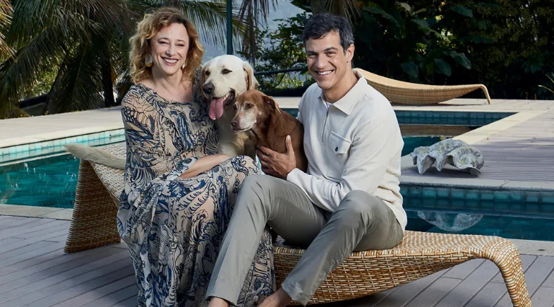 Mateus Solano e Paula Braun chegam ver o mar de sua mansão, no Rio de Janeiro, e muitas vezes é na piscina, que é projetada pelo arquiteto Duda Porto e revestida de pedra Hijau. É lá que o casal prefere se refrescar, seja a dois ou na companhia dos filhos Flora, de 12 anos, e Benjamim, de 8.