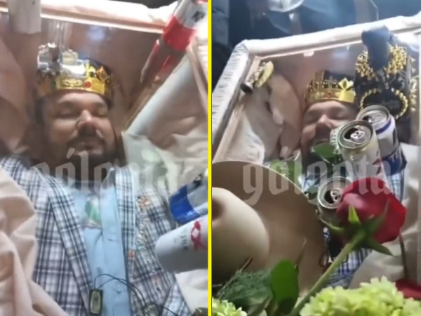 Internautas estão surpresos com vídeo de um chefe de cartel de drogas do México que morreu recentemente em um acidente de carro durante uma prova de arrancada (drag racing) e foi enterrado usando coroa.