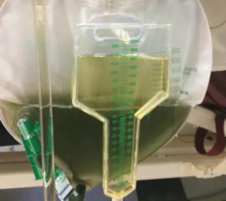 Imediatamente, o homem passou a receber cuidados intensivos com a ajuda de ventiladores para respirar e a aplicação do anestésico propofol. Cinco dias depois e com quadro estabilizado, sua urina — que vinha sendo recolhida por um cateter vesical — começou a ficar verde.