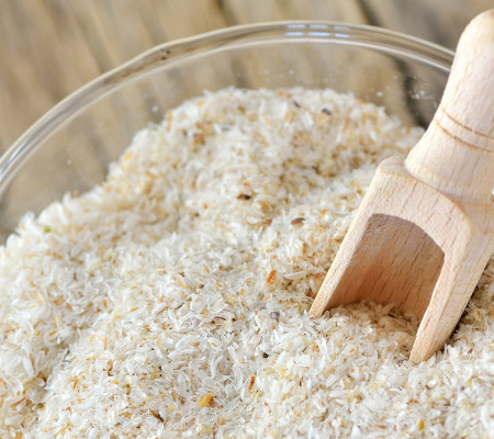 Psyllium, que pode ser encontrado em lojas de produtos naturais e é extraído da casca das sementes de um arbusto