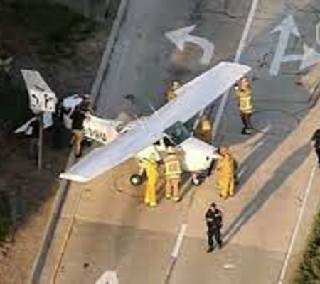 Um avião de pequeno porte de propriedade da polícia de Los Angeles teve que fazer um pouso de emergência em uma rodovia movimentada, enquanto carros passavam pela via em alta velocidade, na manhã de terça-feira (1°).