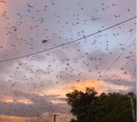 Um vídeo publicado no Instagram mostra os animais voando em círculos durante o entardecer. São tantos que não é possível contá-los, mas sim escutar os seus guinchos.